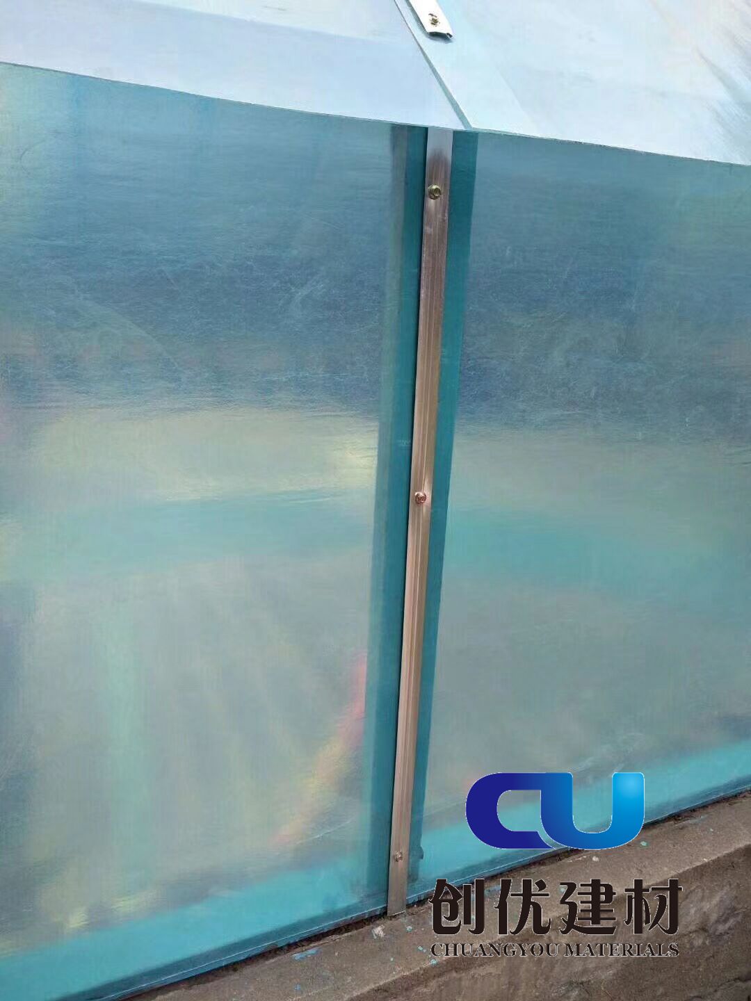 一是樹脂含量,濃度達到75%左右,采光板每平方能承受110--145公斤的重物的站壓,能夠遇到大雨或大雪不被壓塌。二要使用雙面玻璃纖維氈覆蓋在樹脂上,讓樹脂有效結合在一起固化。三固化開始常溫運行,然后升溫到適當時候,持續恒溫固化,讓樹脂均勻在氈上達到指定時間。四冷卻時間是關鍵,這是每個廠的核心機密,樹脂中其它合成劑隨溫度慢慢固化成型。所以采光板的強度驗證方法:一是重量;二是高空落錘試驗;三是升溫加重不開裂。